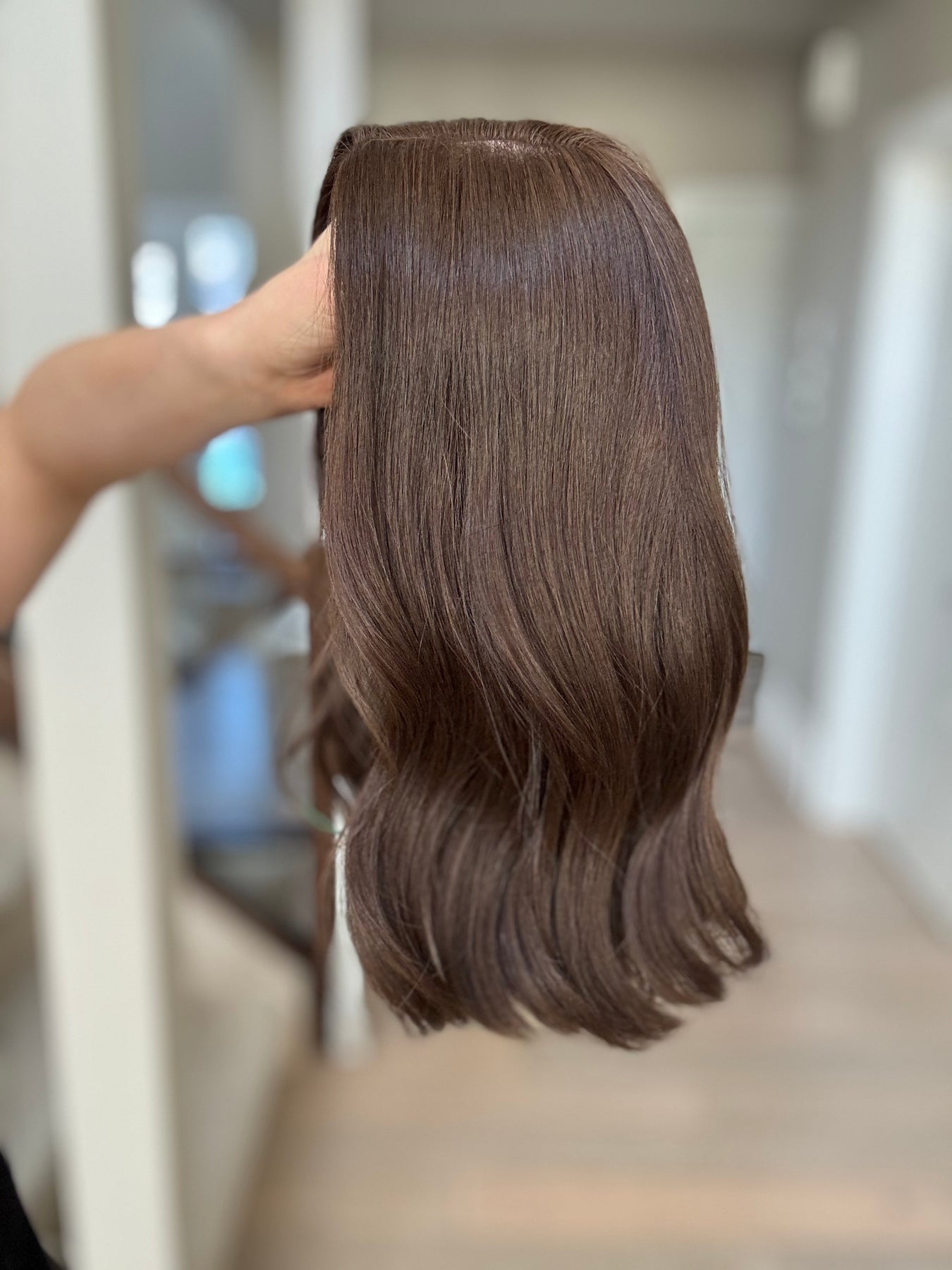 • It gives you perfect coverage in the back (FYI, this will help out immensely if your bio hair color isn’t exactly the same as your topper hair color). With smaller toppers, because there isn’t as much coverage in the back, color matching becomes super important to a natural look. This also means you could actually venture into colors that don’t match your hair perfectly that you want to have fun with.