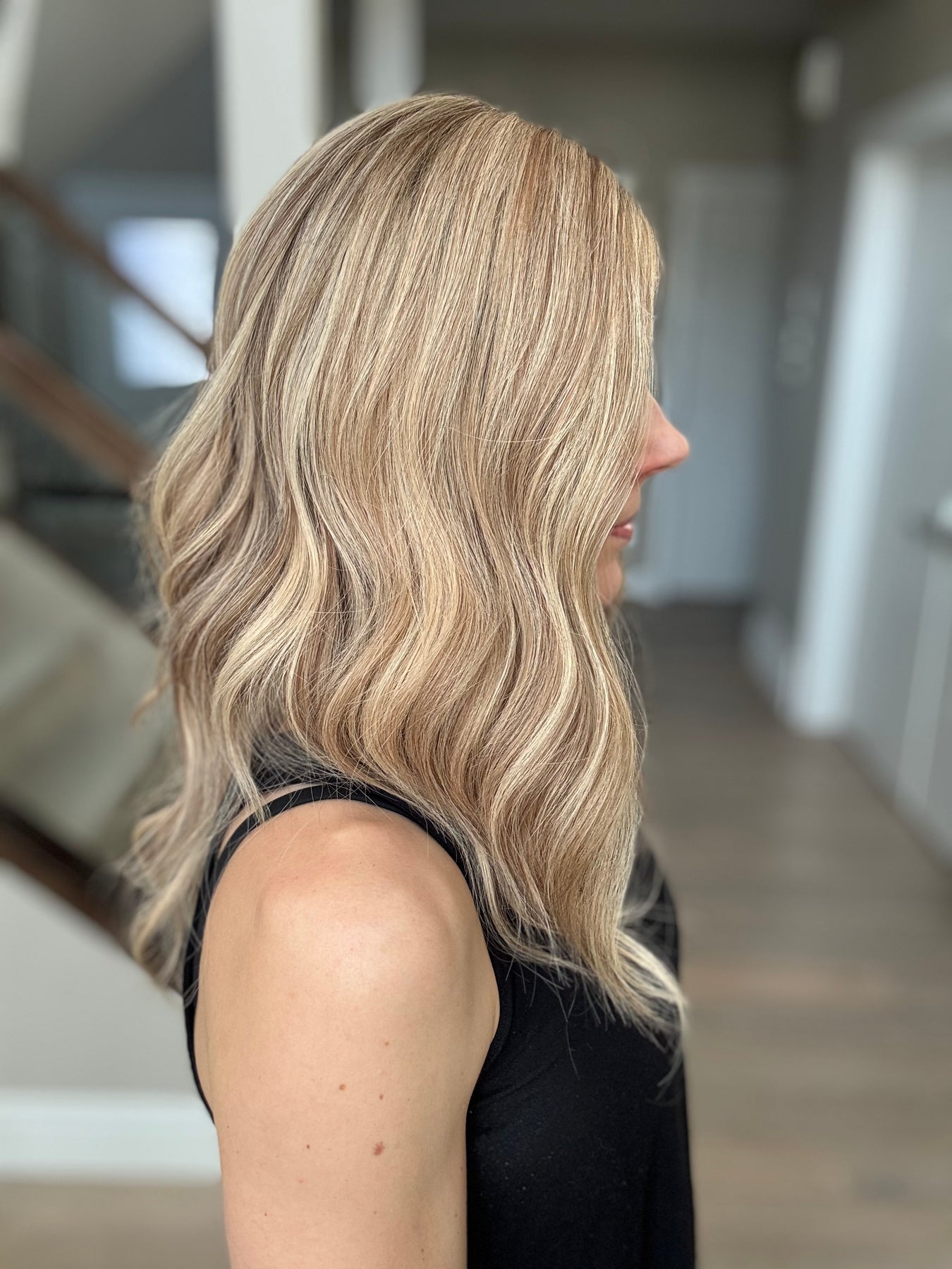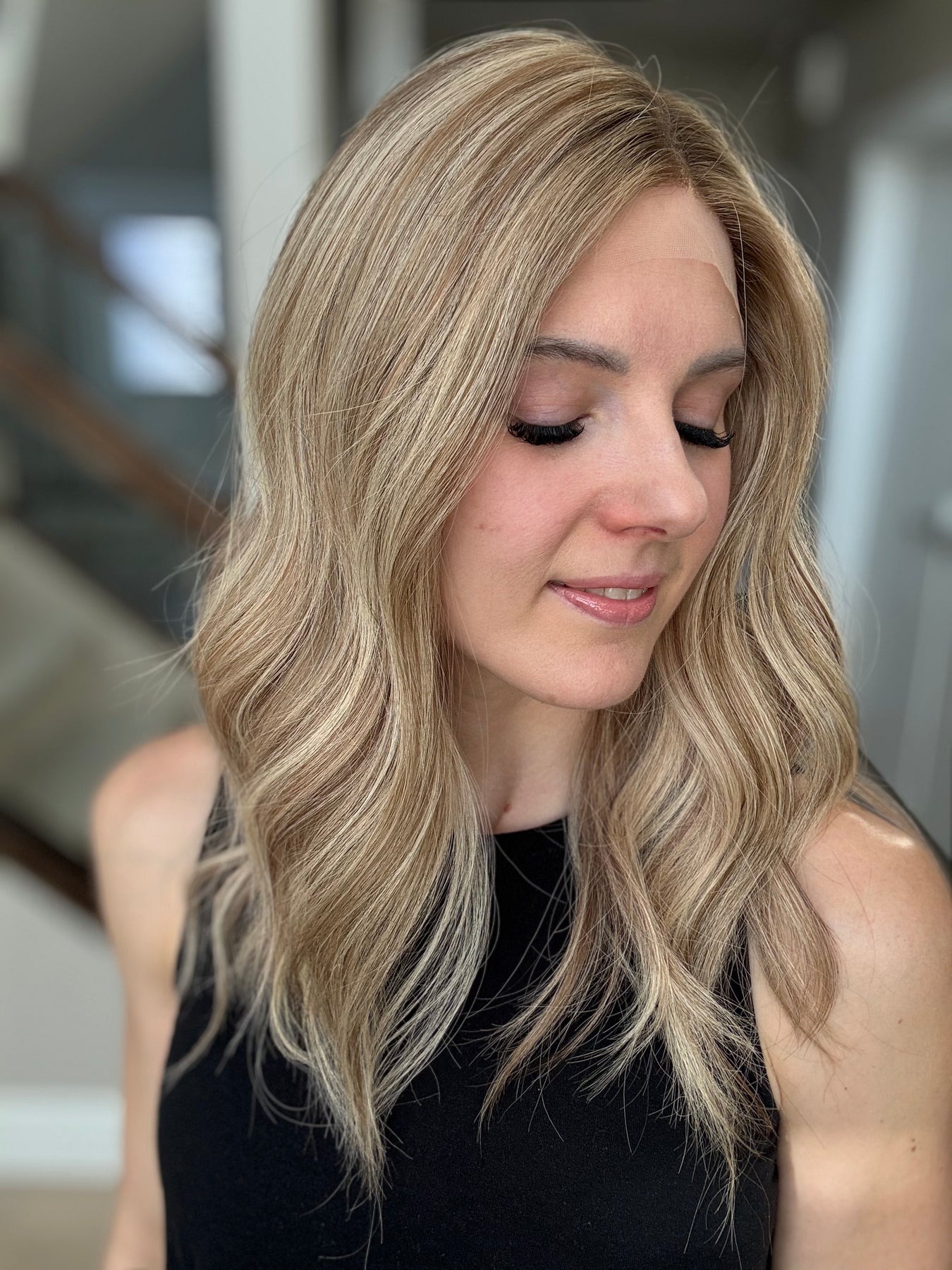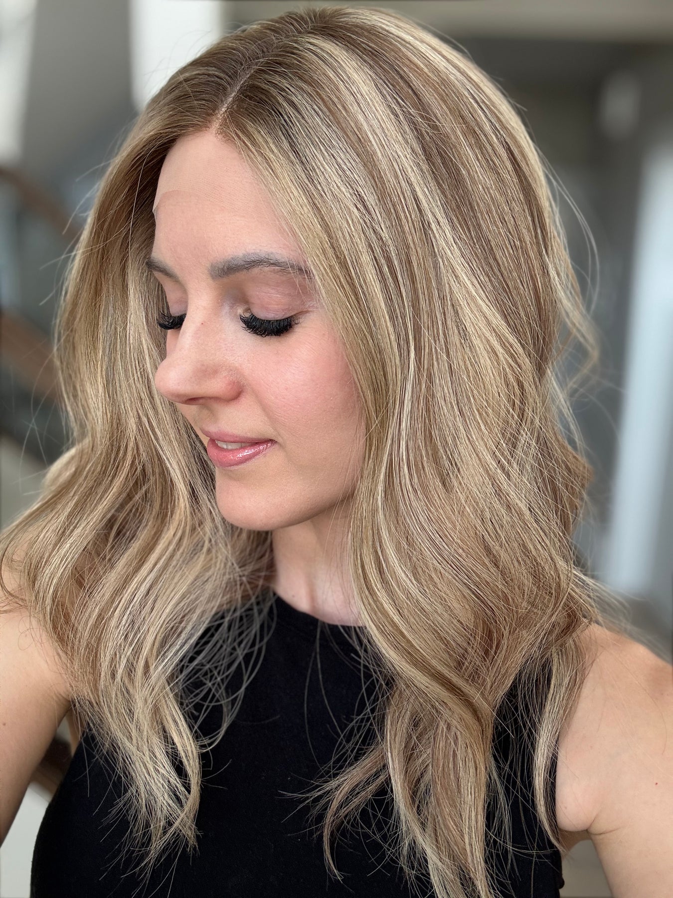 * Color: Light-medium neutral blonde with lots of dimension and a slightly darker root. This color has warm undertones.