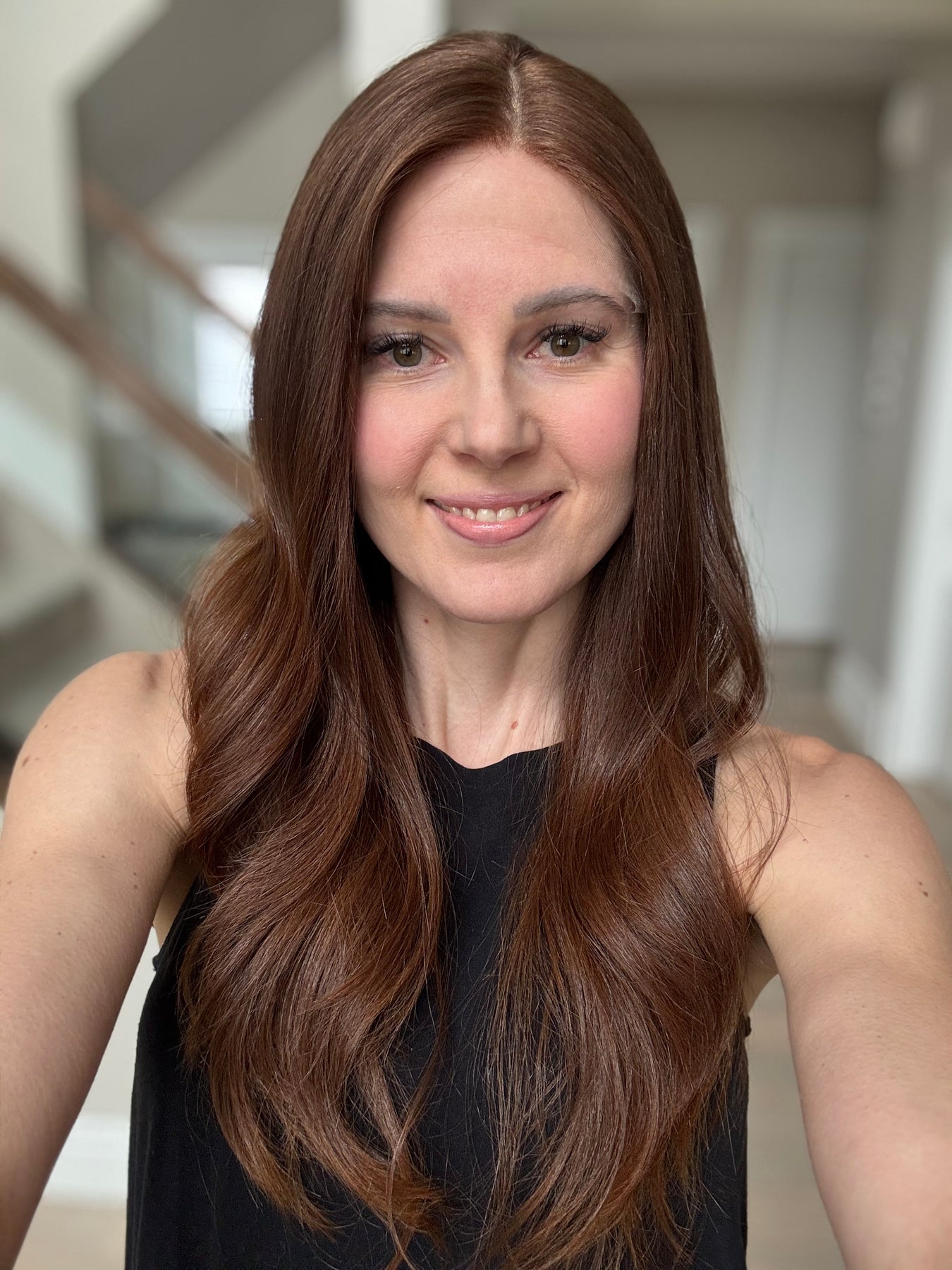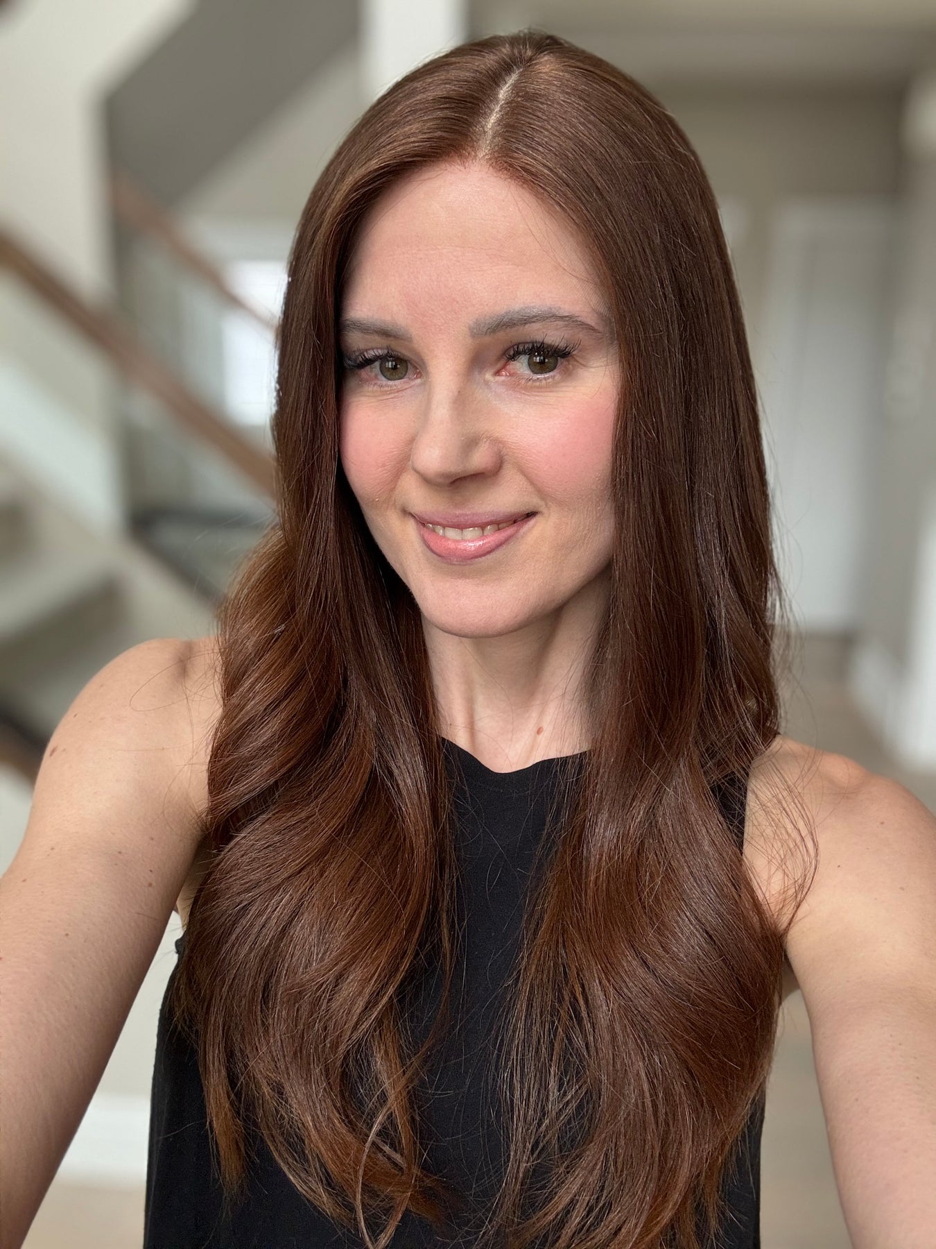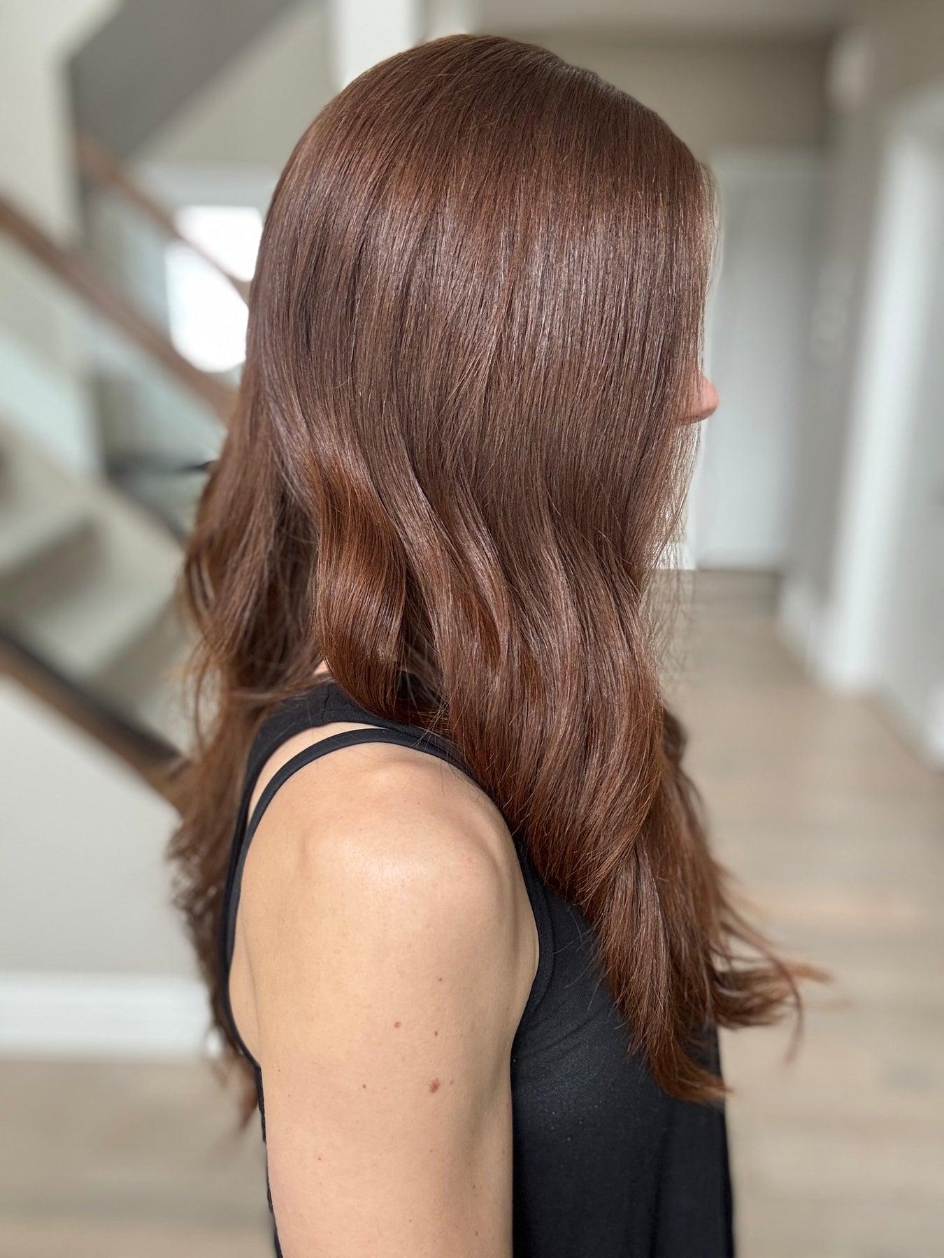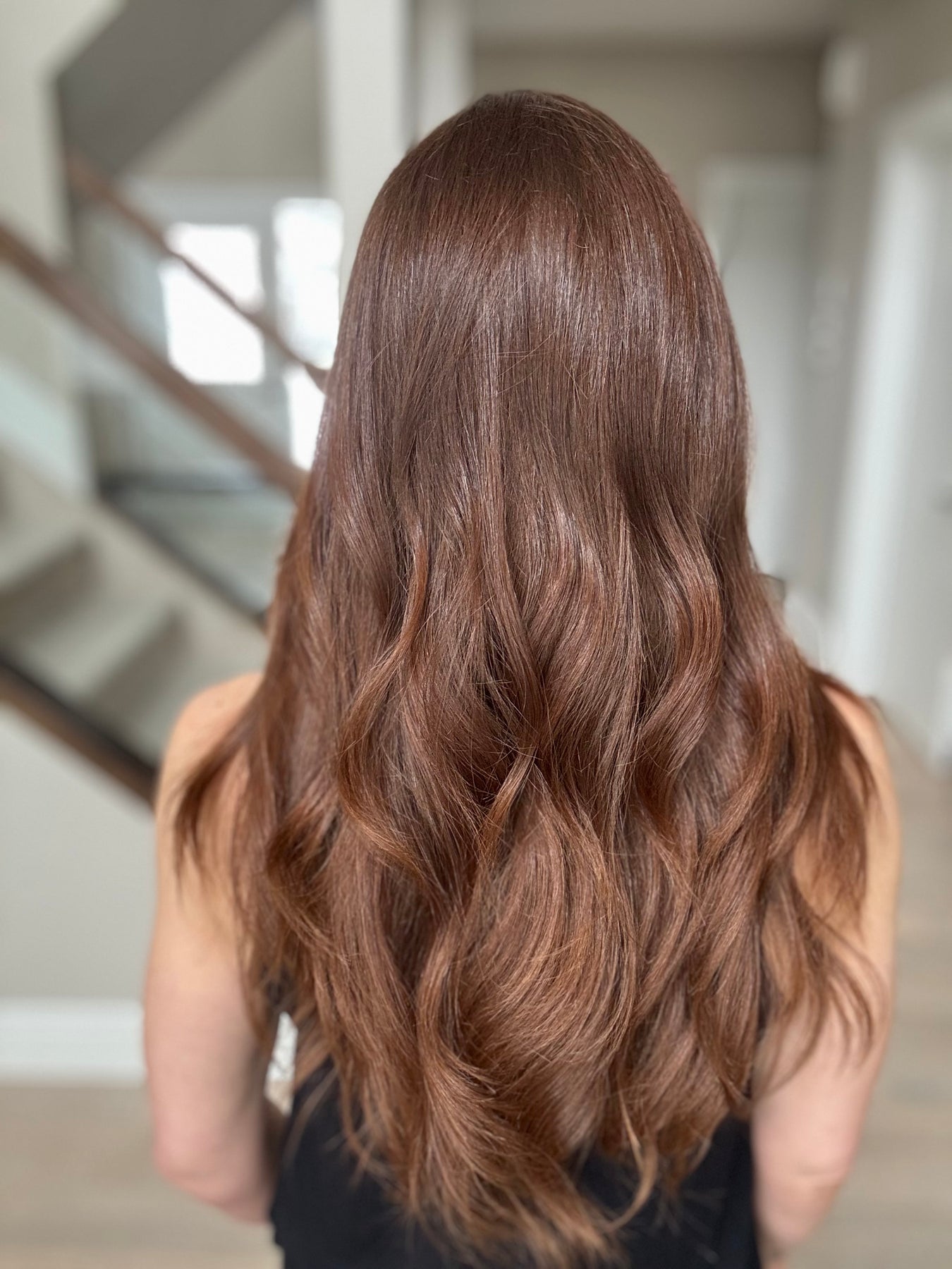 * Color: Medium auburn brown. This color has noticeable red tones (could be classified as auburn).