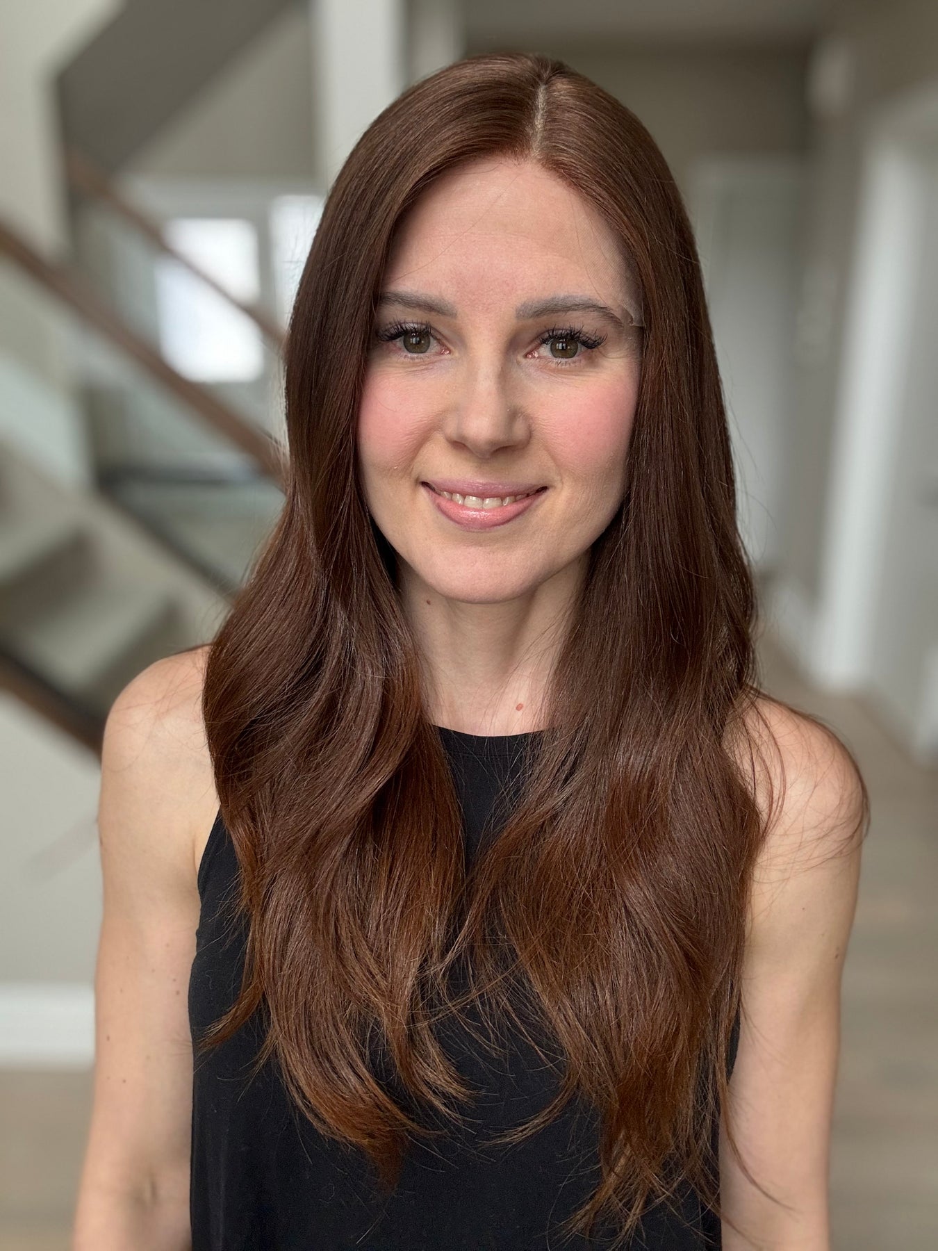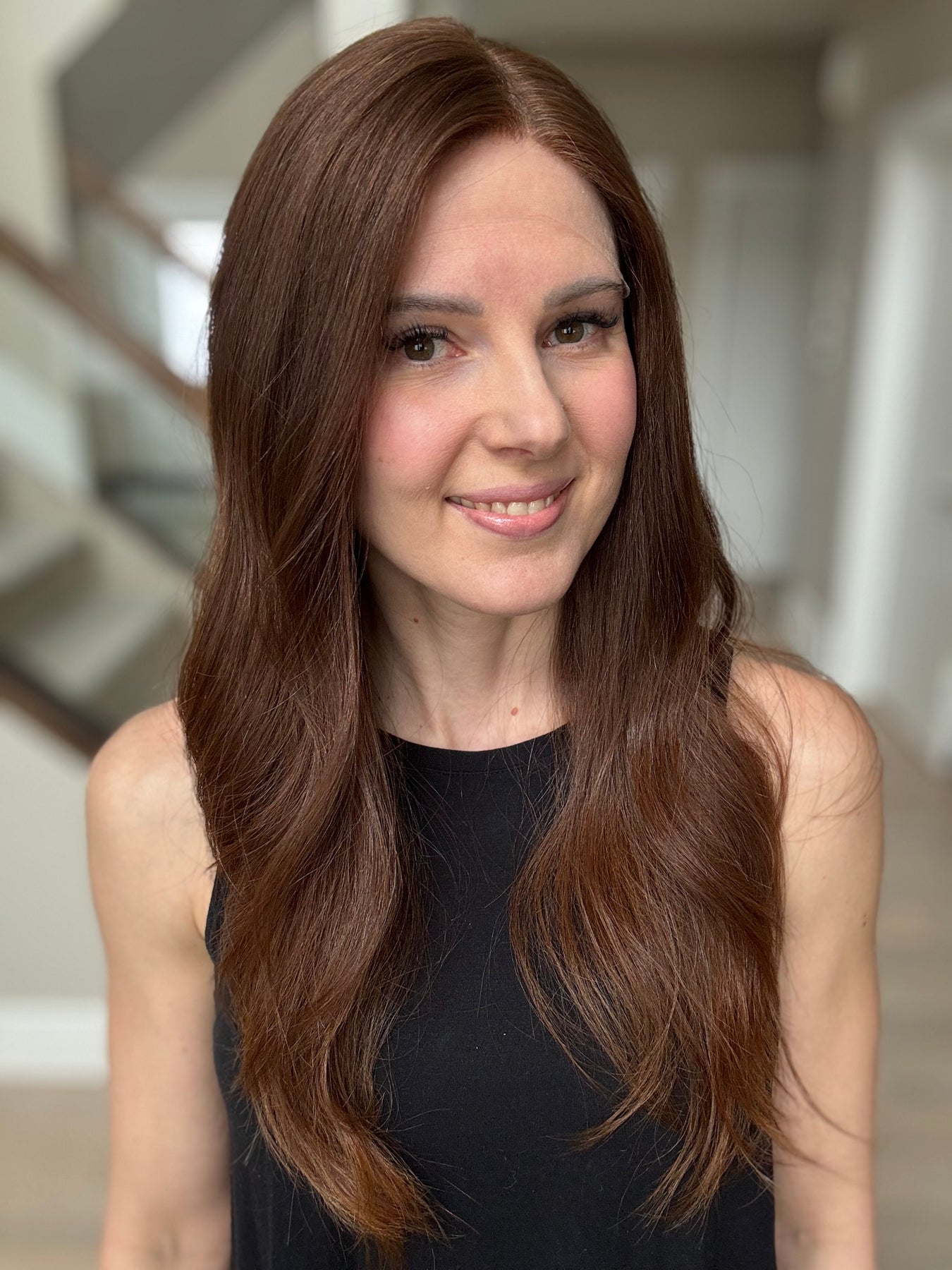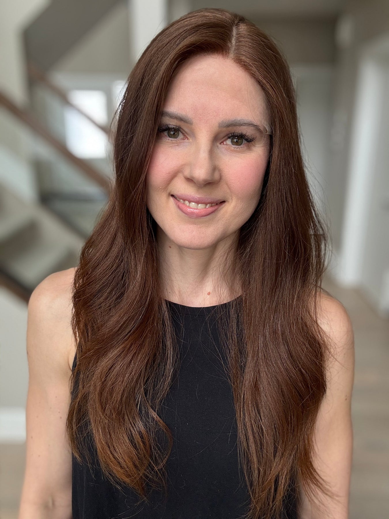 * Color: Medium auburn brown. This color has noticeable red tones (could be classified as auburn).