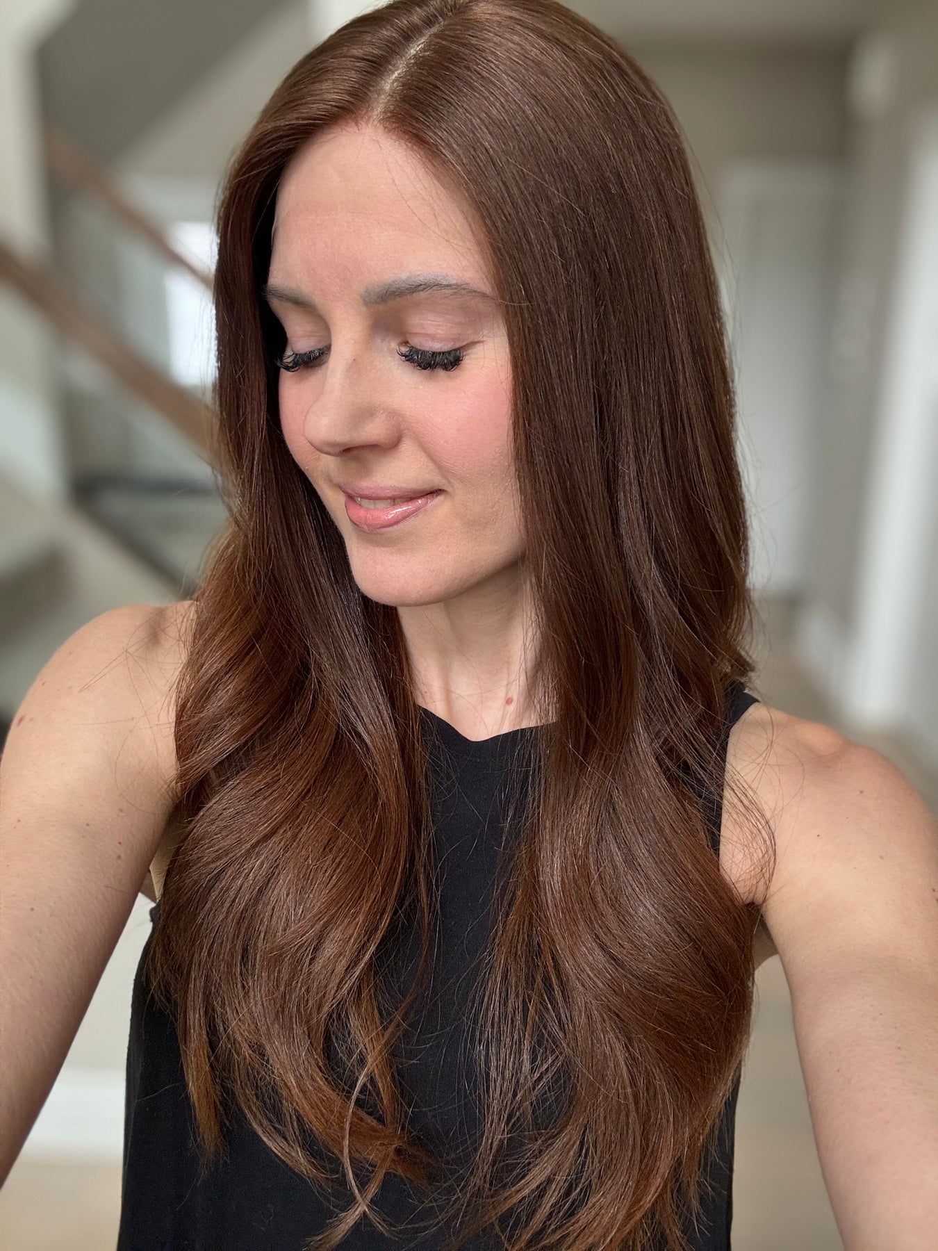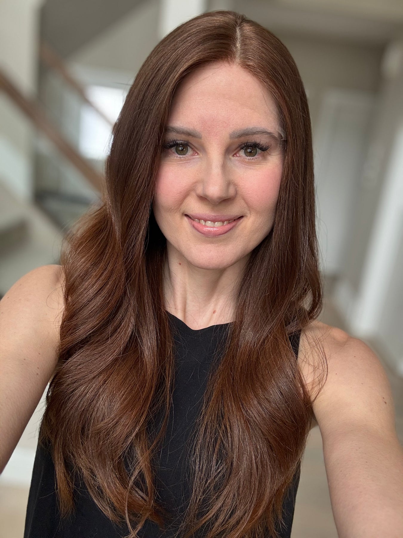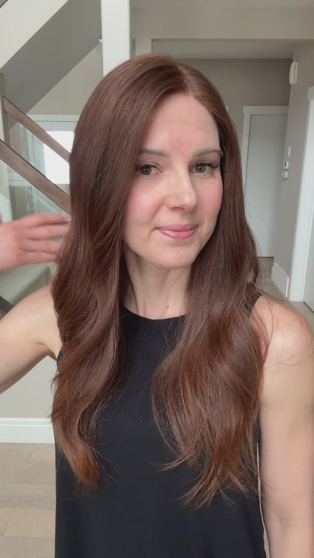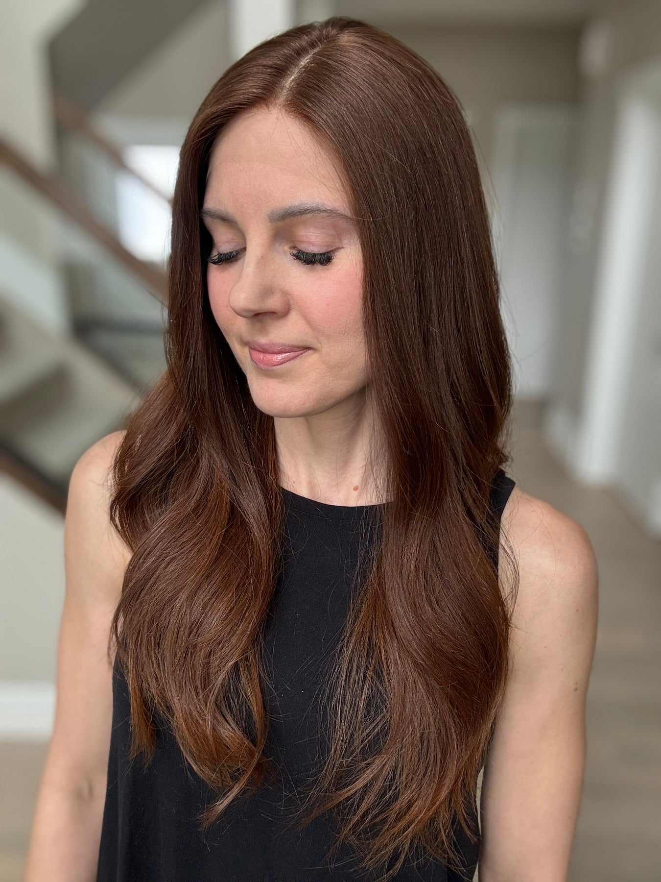 * Color: Medium auburn brown. This color has noticeable red tones (could be classified as auburn).