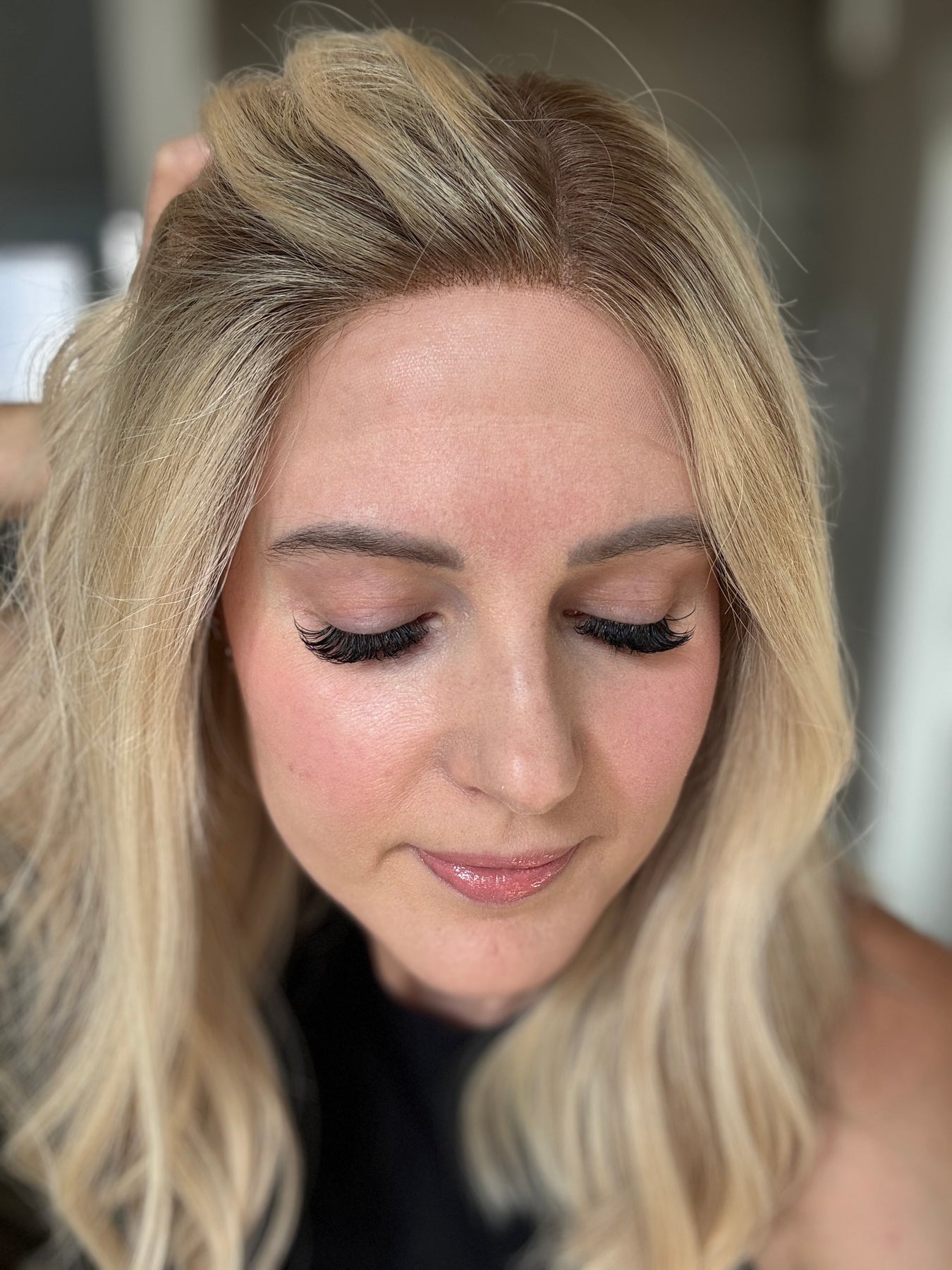 * Blonde hair in the front of the hairline to help conceal knots behind