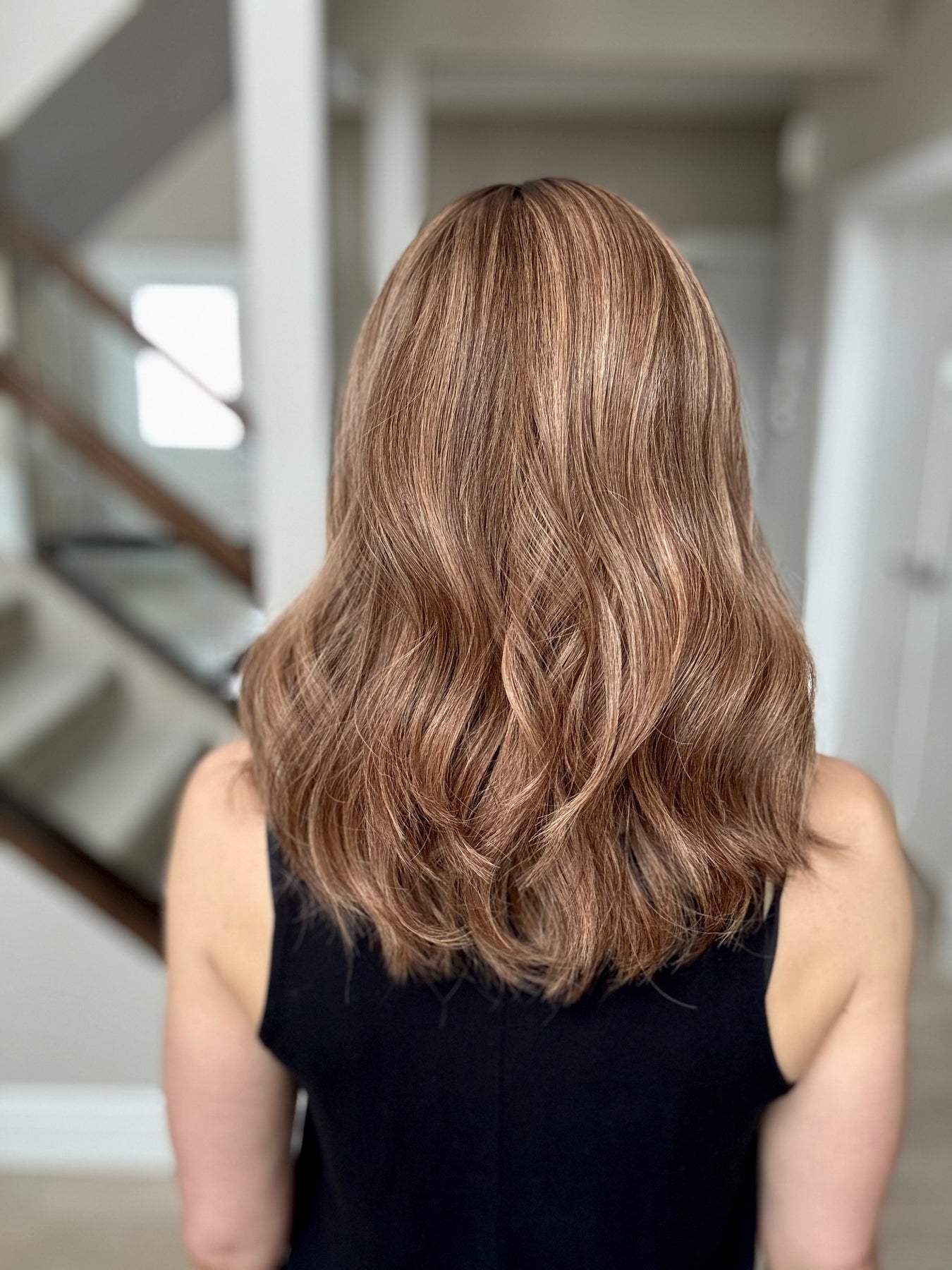 * Color: Dark brown with warm medium brown highlights and a darker root.