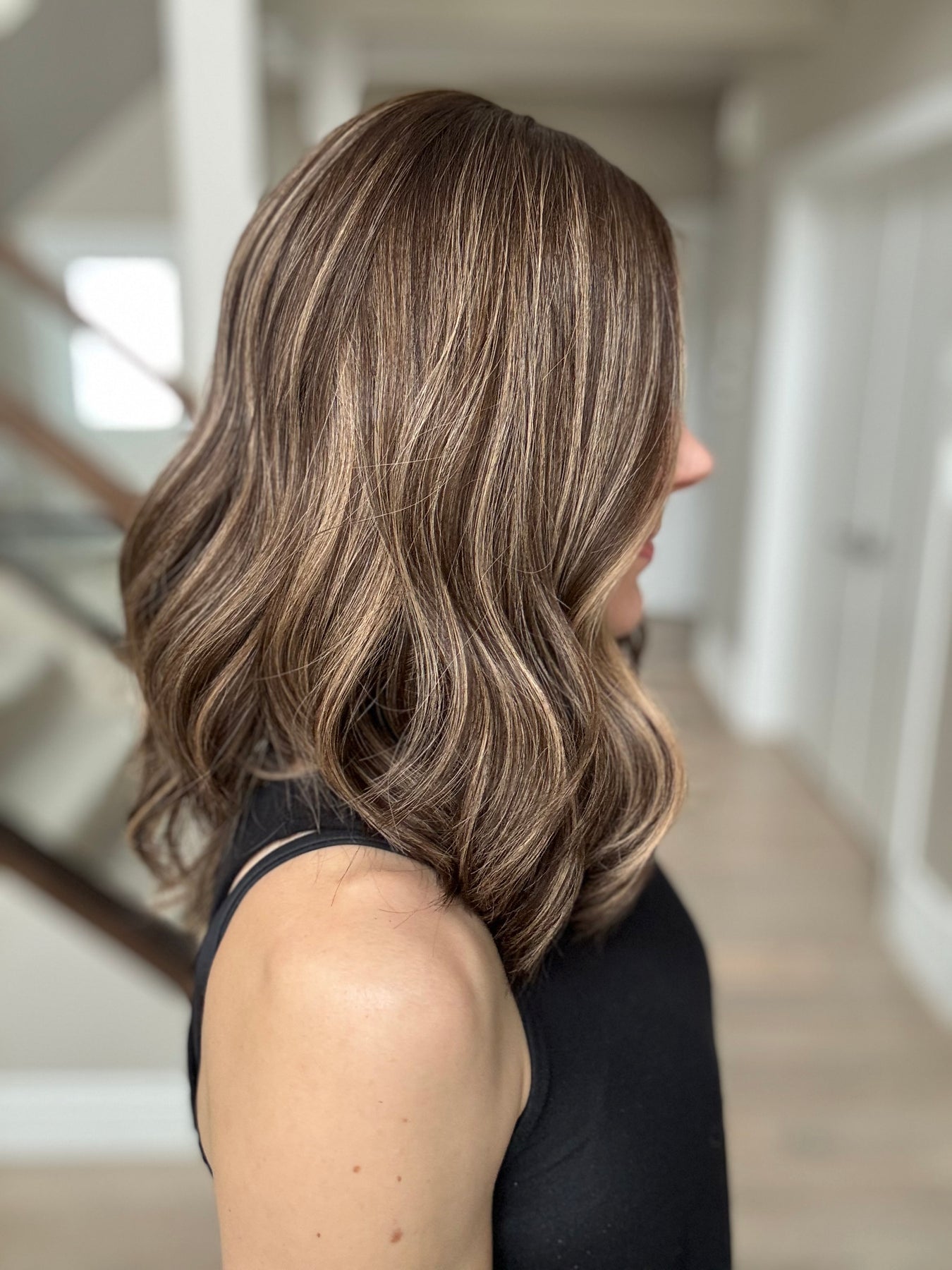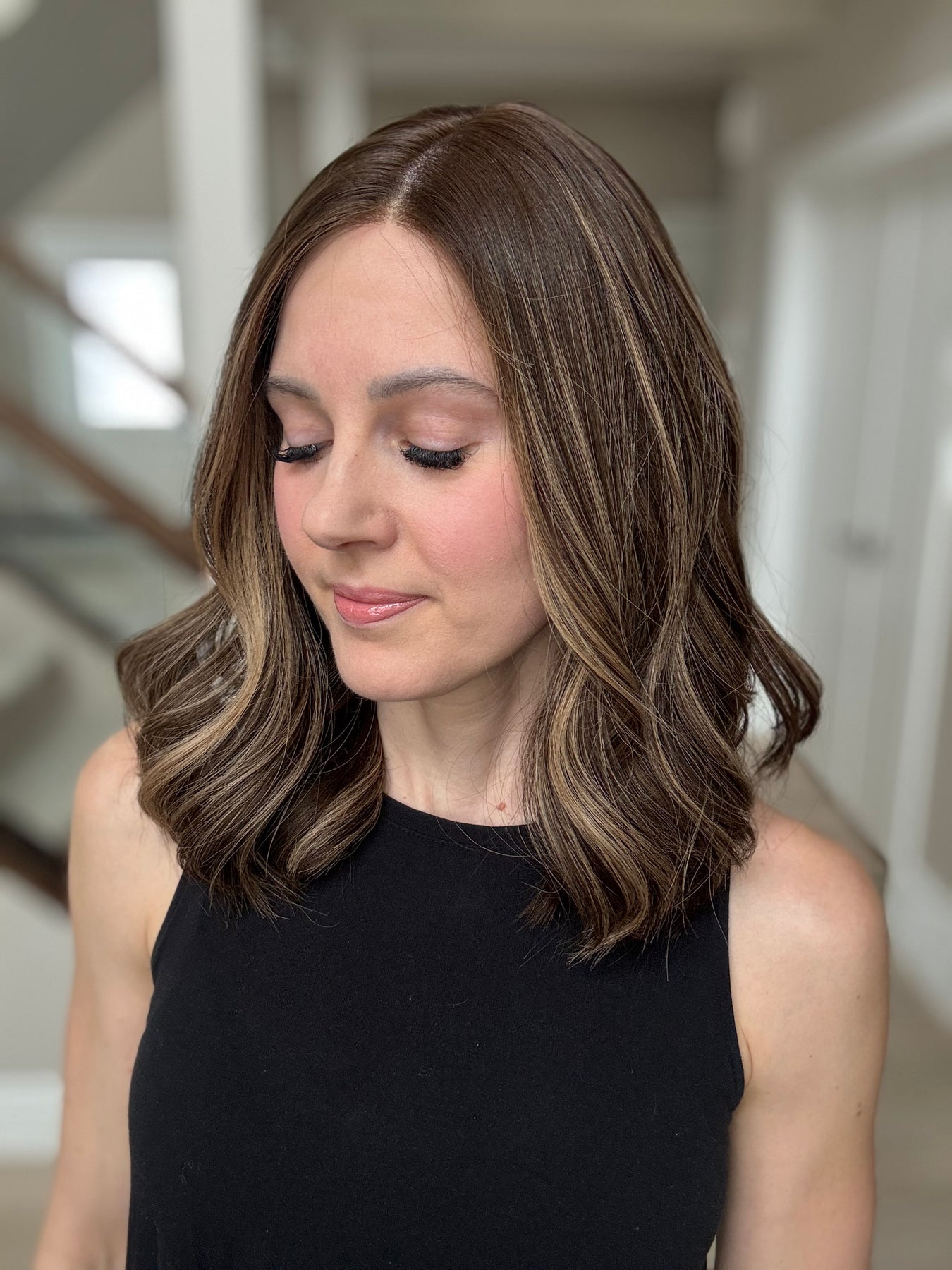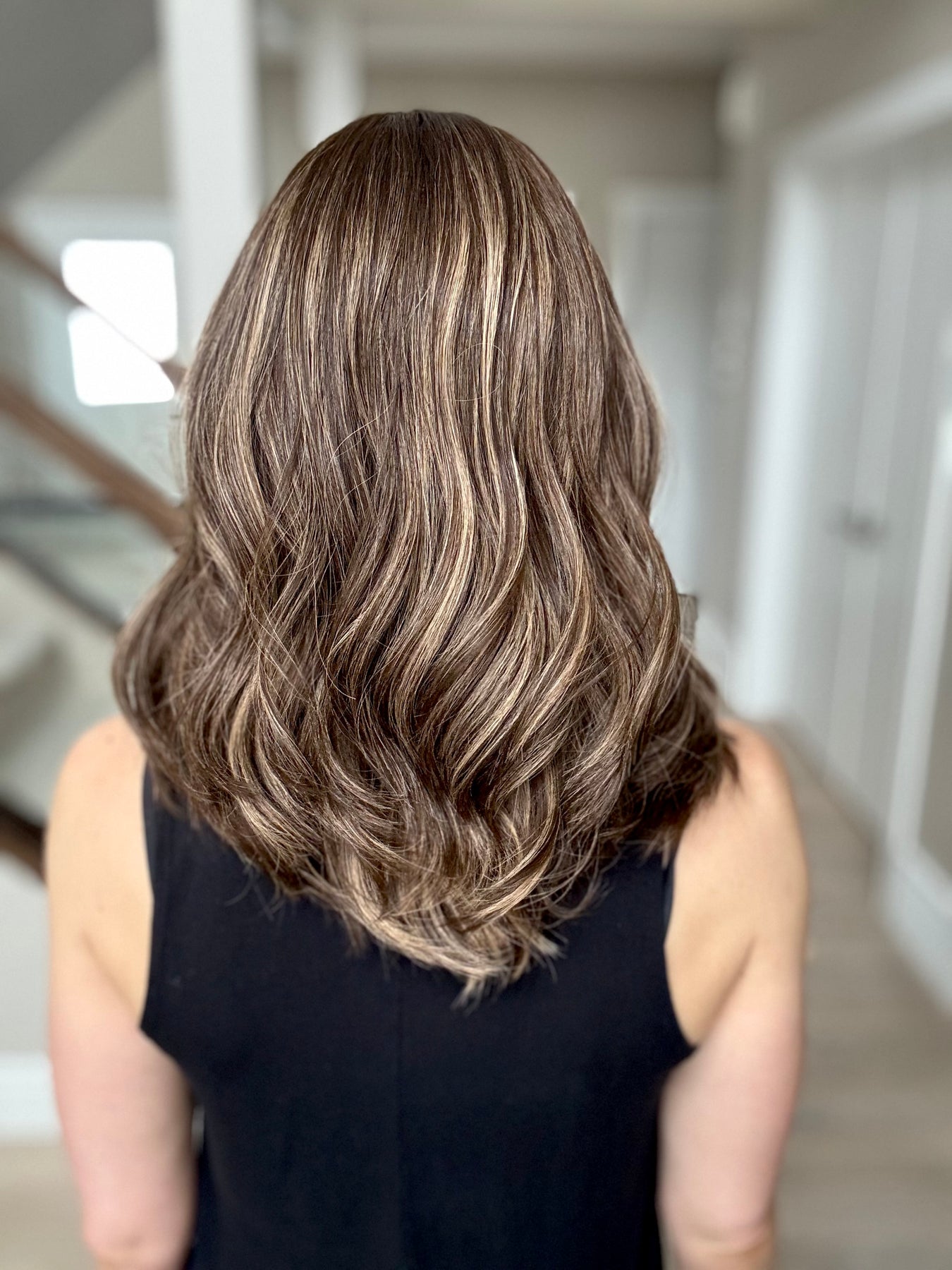 * Color: Dark brown with dark blonde balayage.
