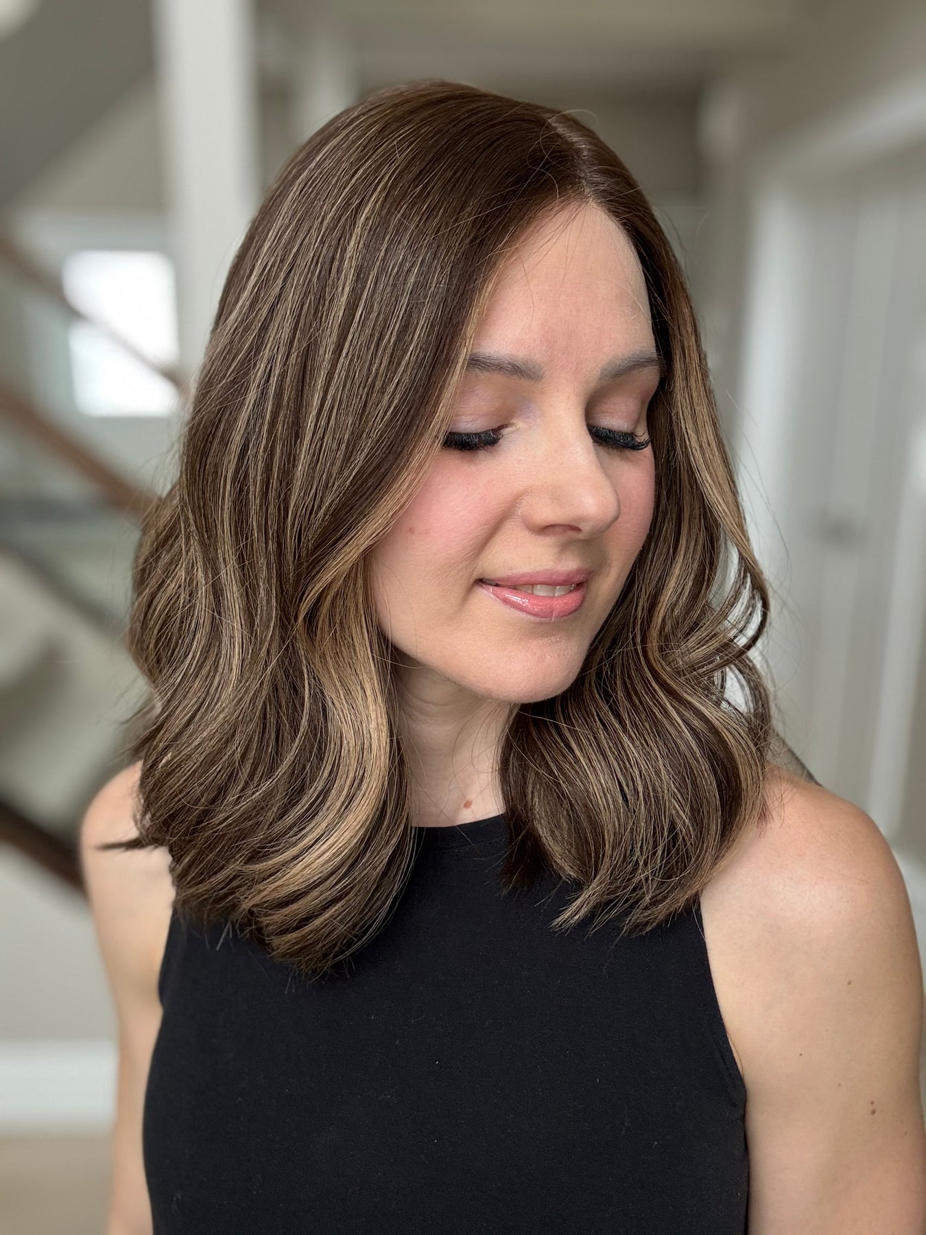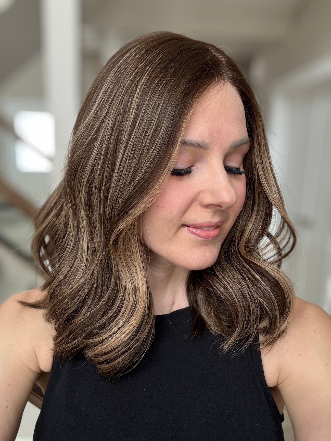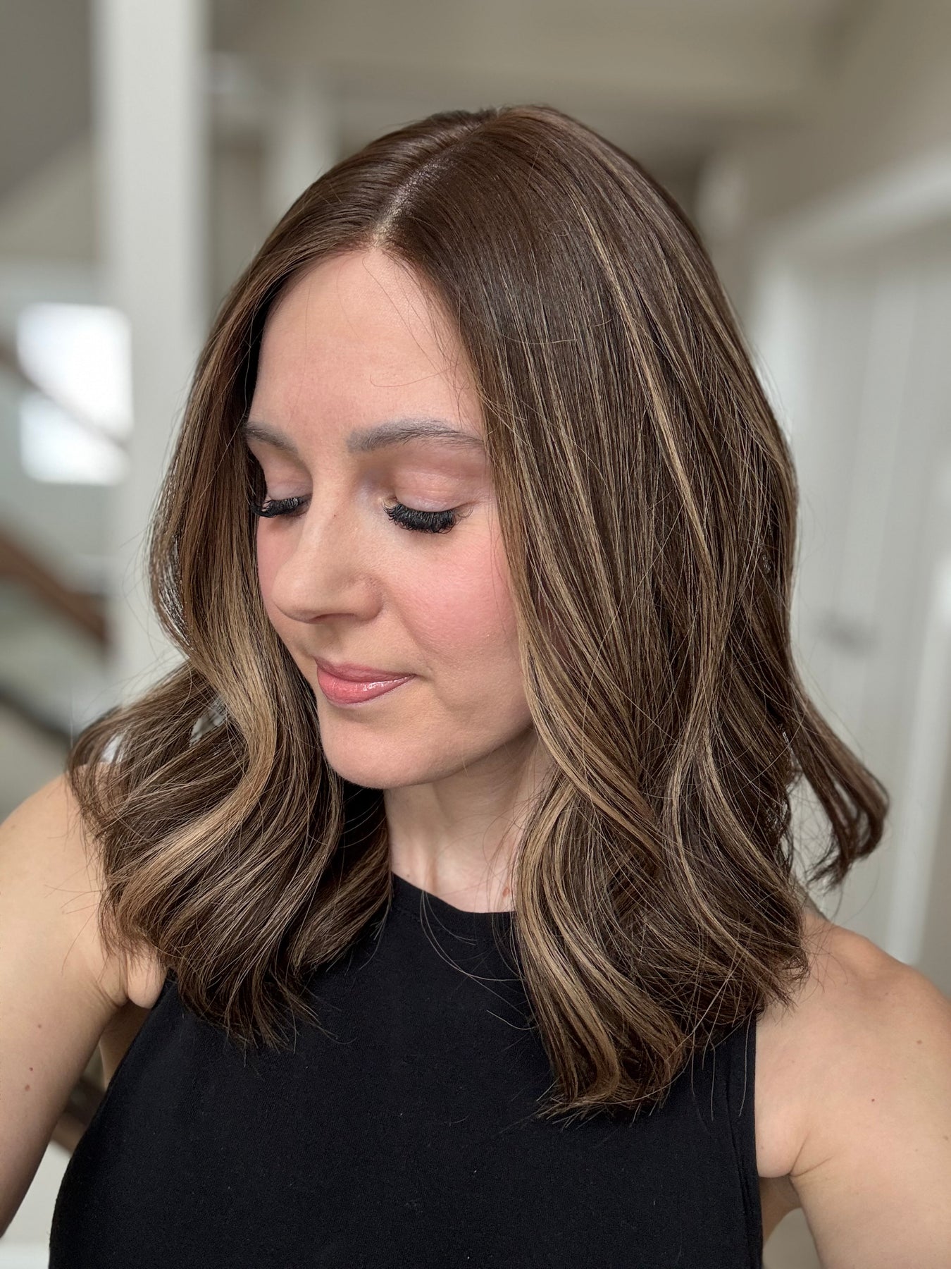 * Color: Dark brown with dark blonde balayage.