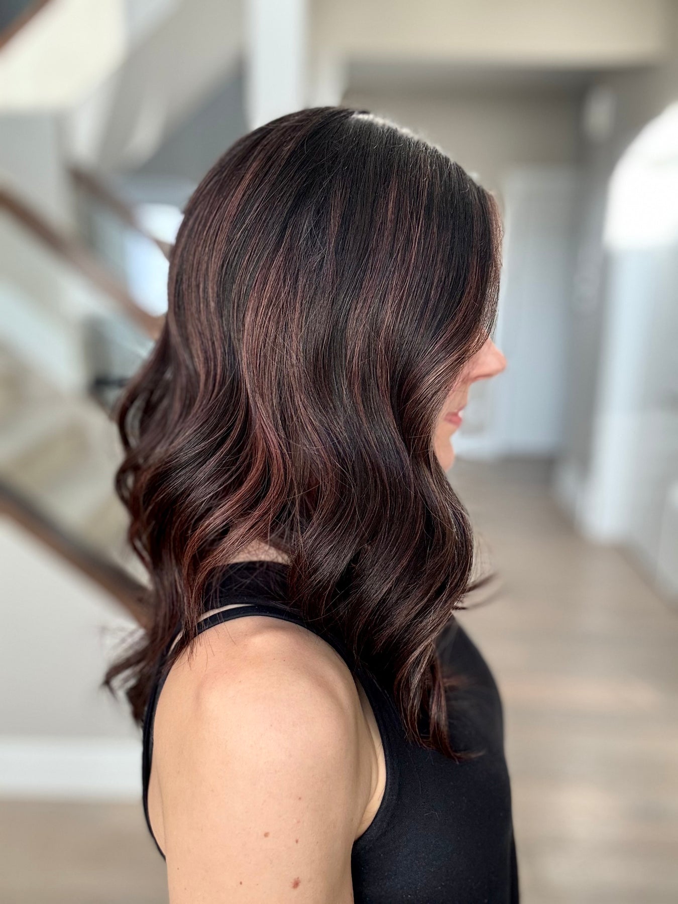 * Color: Off black with deep red balayage.