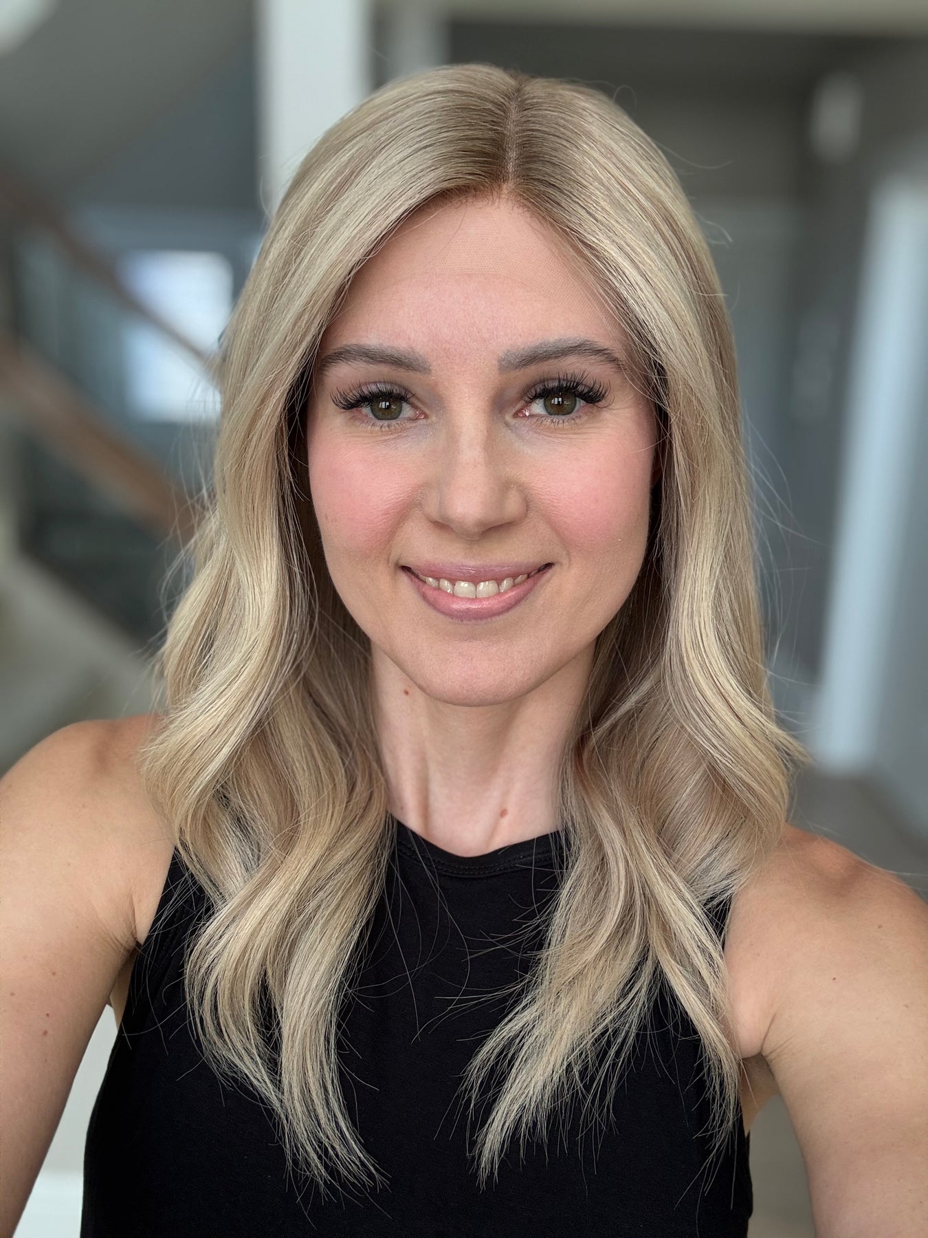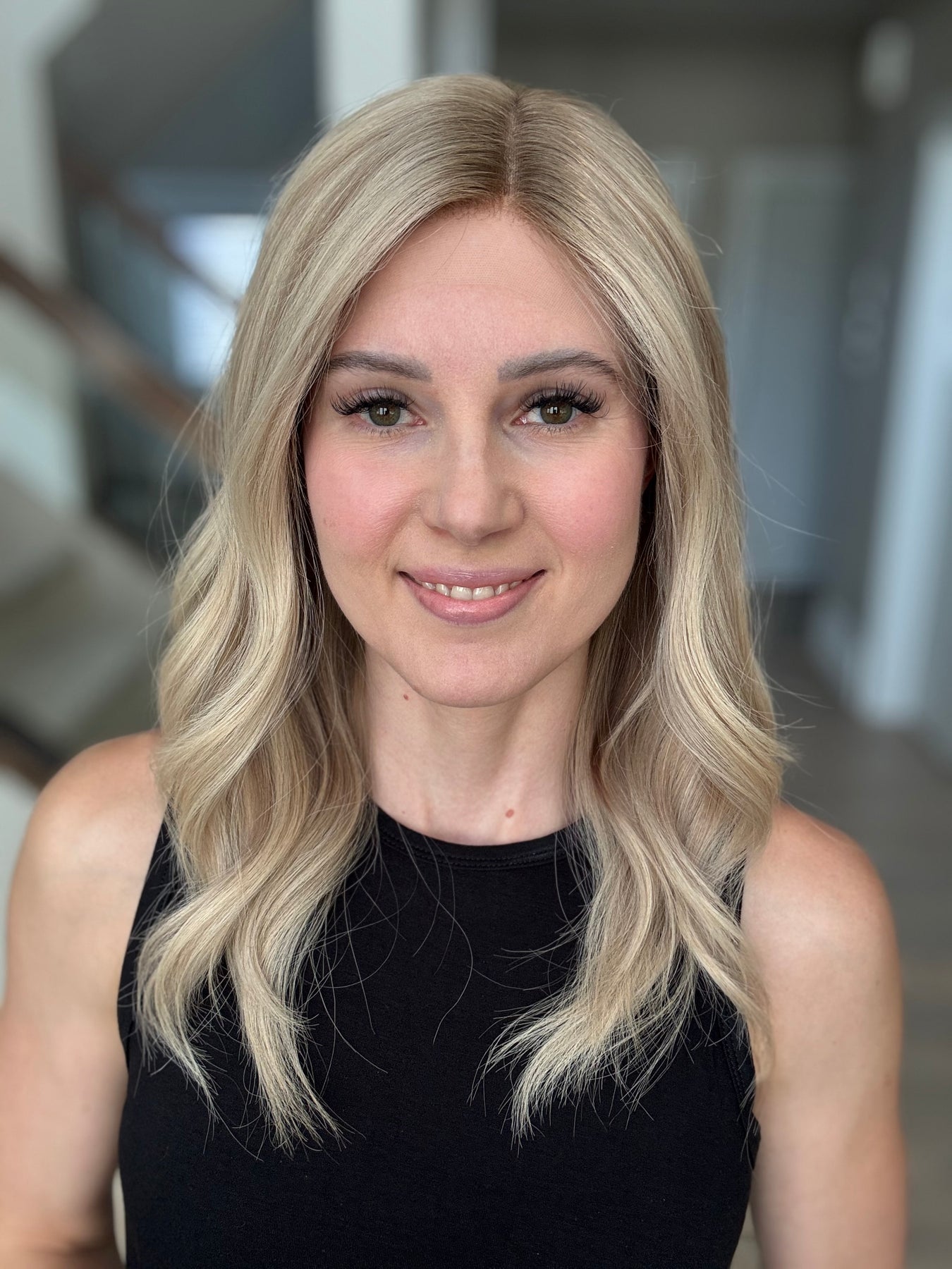 * Color: Neutral blonde with dimension and a dark blonde root.