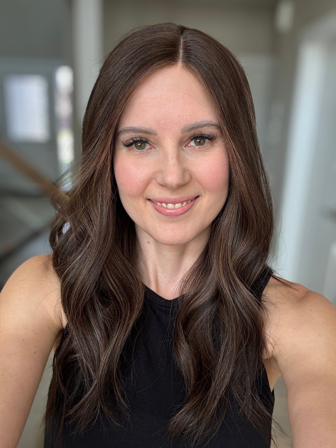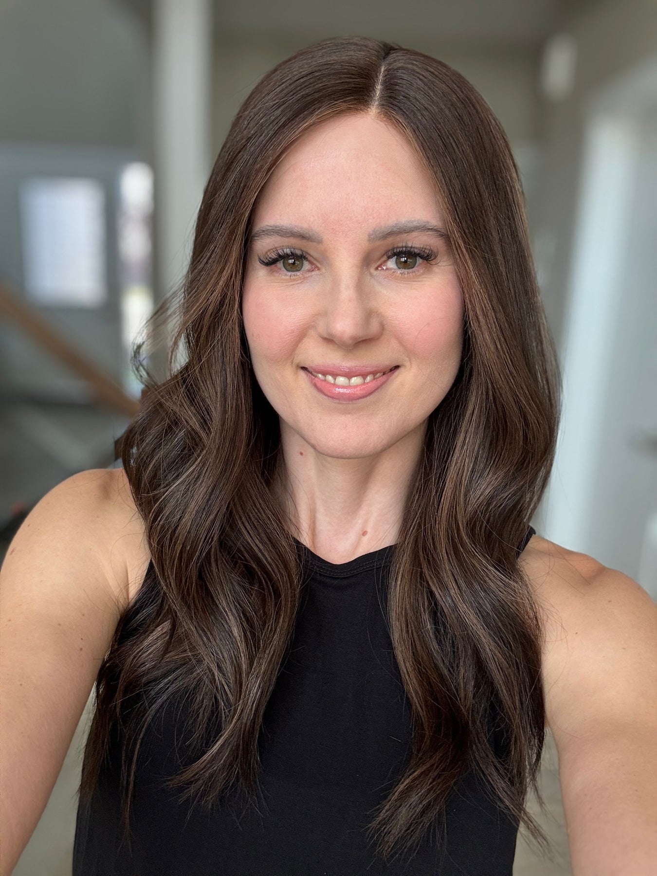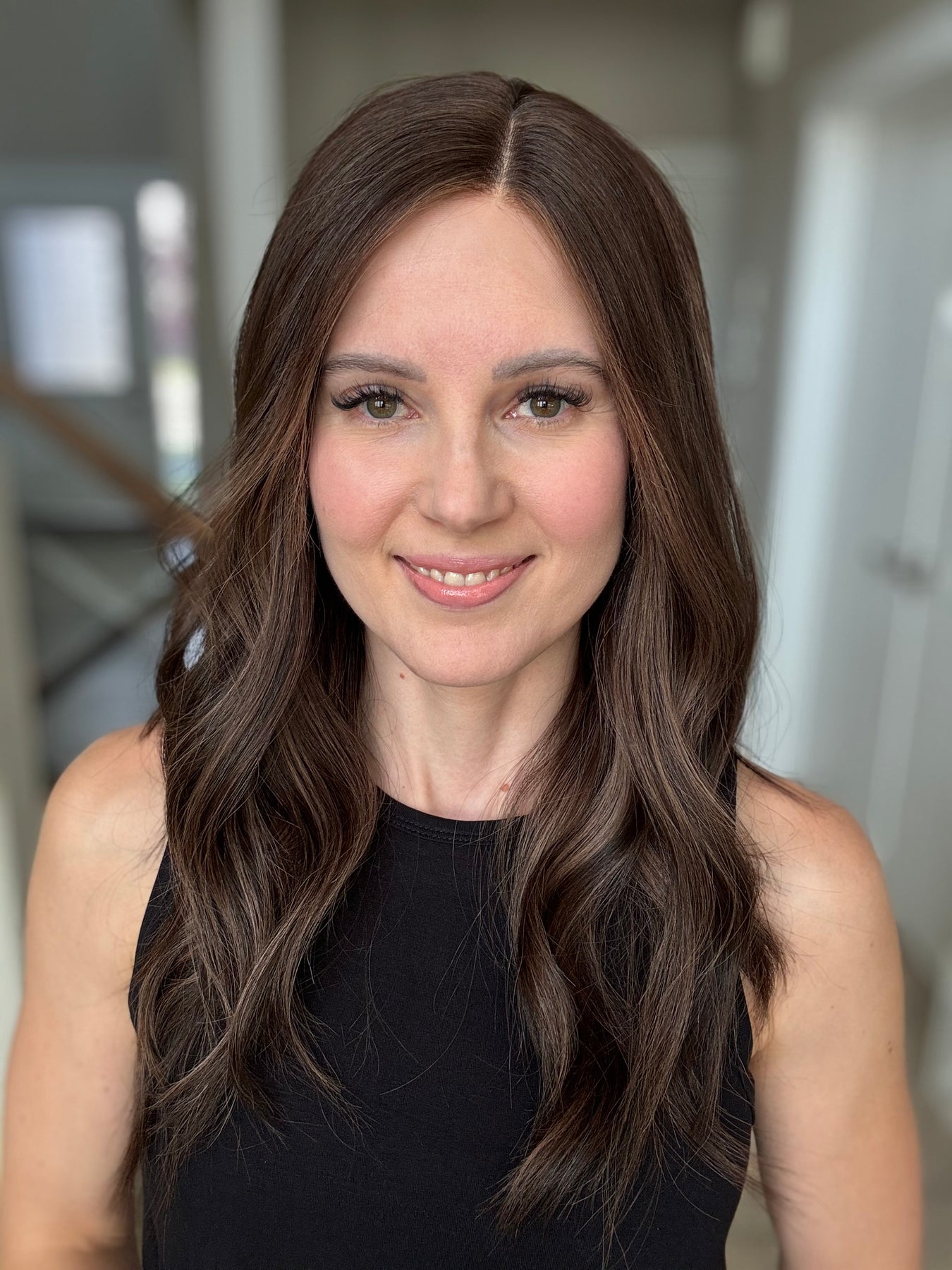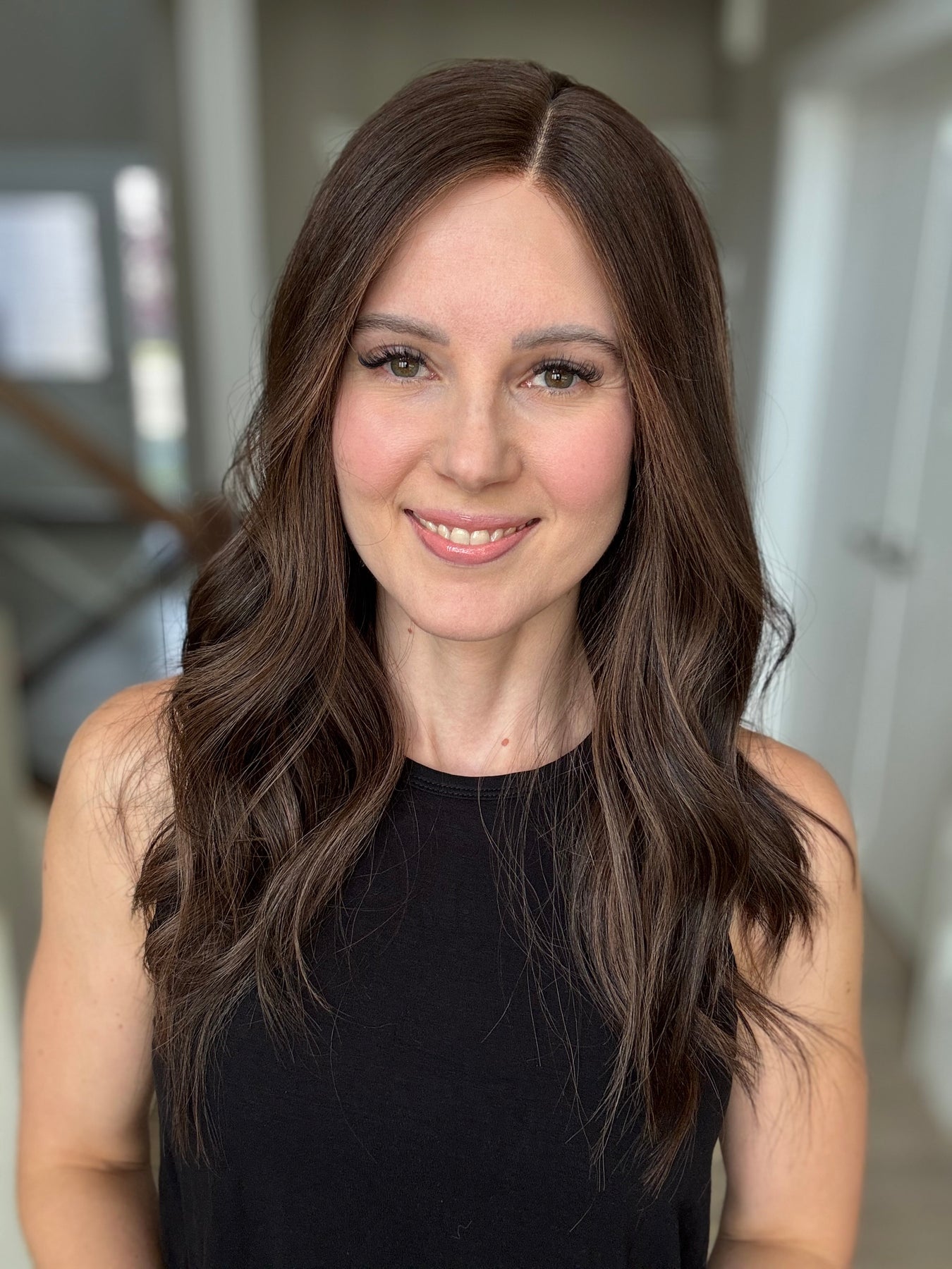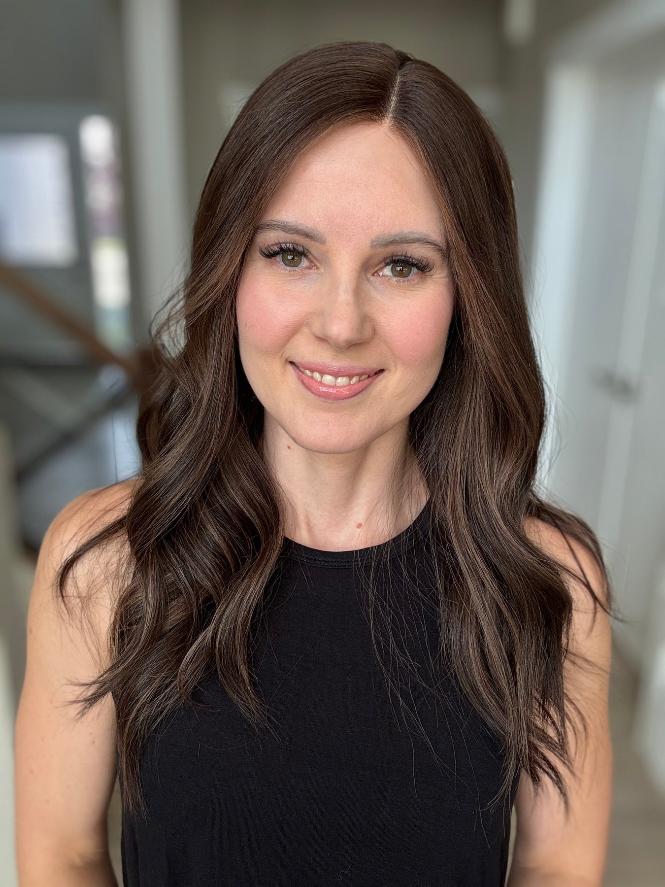 * Color: Dark brown with chocolate balayage.