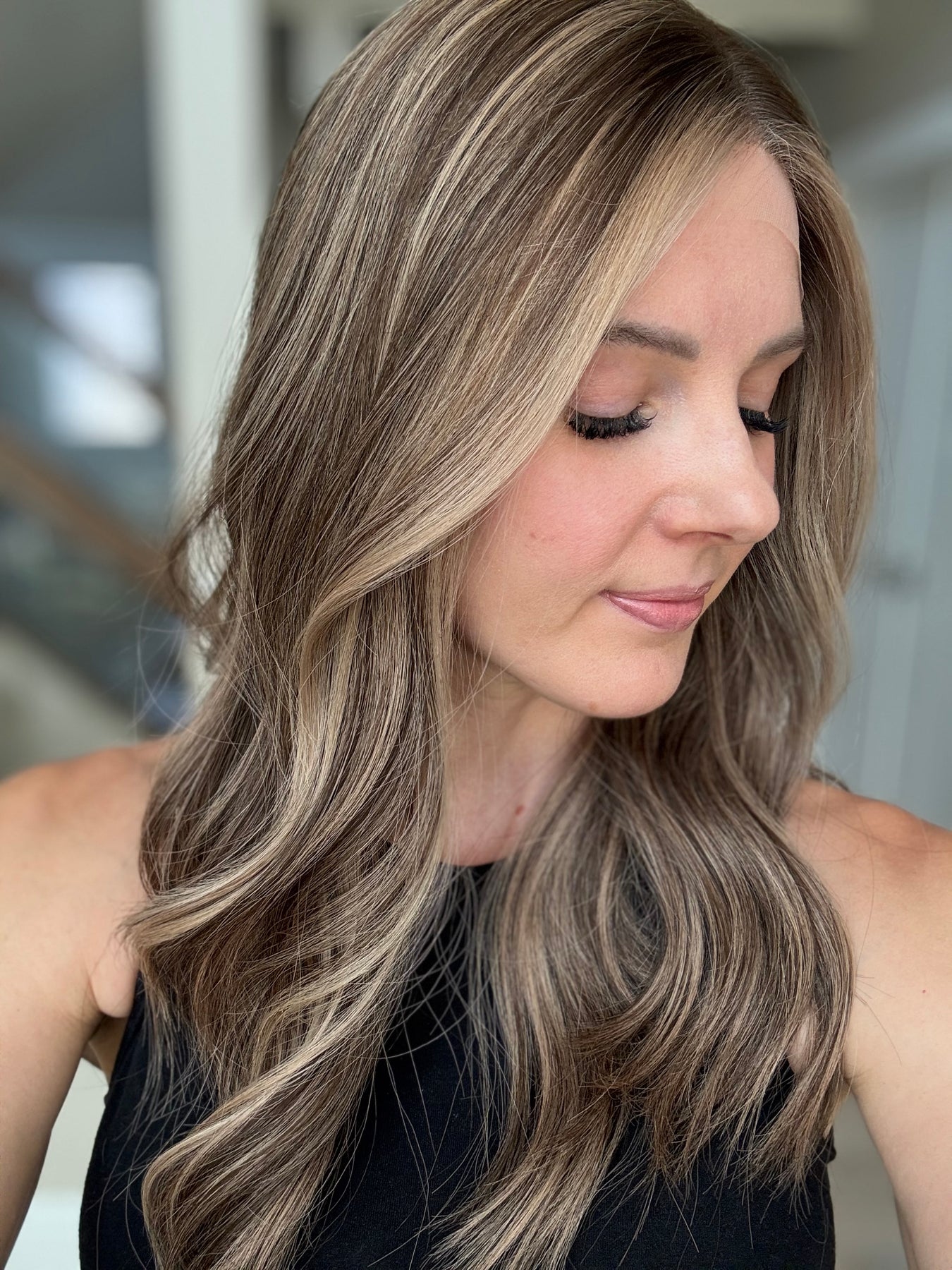 * Color: Medium neutral brown with dark beige blonde highlights.