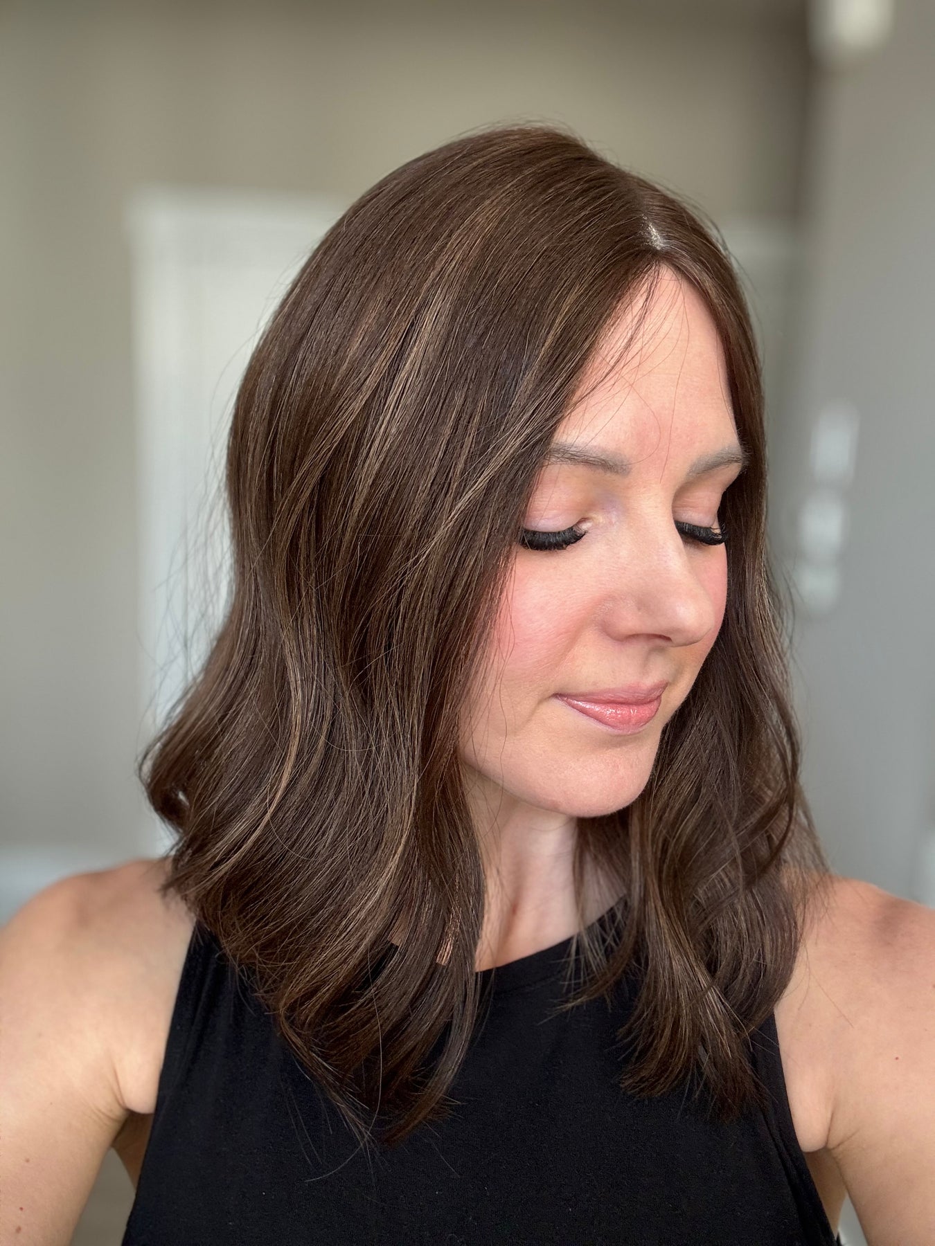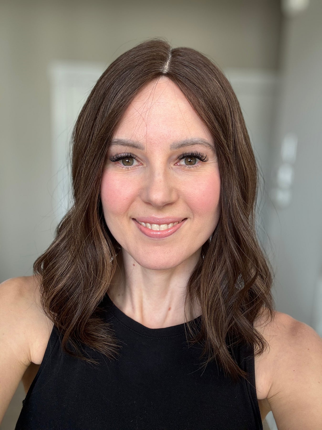 • It gives you perfect coverage in the back (FYI, this will help out immensely if your bio hair color isn’t exactly the same as your topper hair color). With smaller toppers, because there isn’t as much coverage in the back, color matching becomes super important to a natural look. This also means you could actually venture into colors that don’t match your hair perfectly that you want to have fun with.